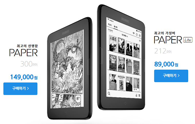 당시에는 149,000원이 비싸서 라이트를 샀는데, 요즘 가격을 보면 그냥 300dpi짜리 살 걸 후회가 돼. 요즘 모델은 20만 원 중반대에 구할 수 있지만, 그렇게 비쌀 일일까 싶어. (직접 비교하긴 무리가 있지만) 킨들 가격에 비하면 많이 비싸.