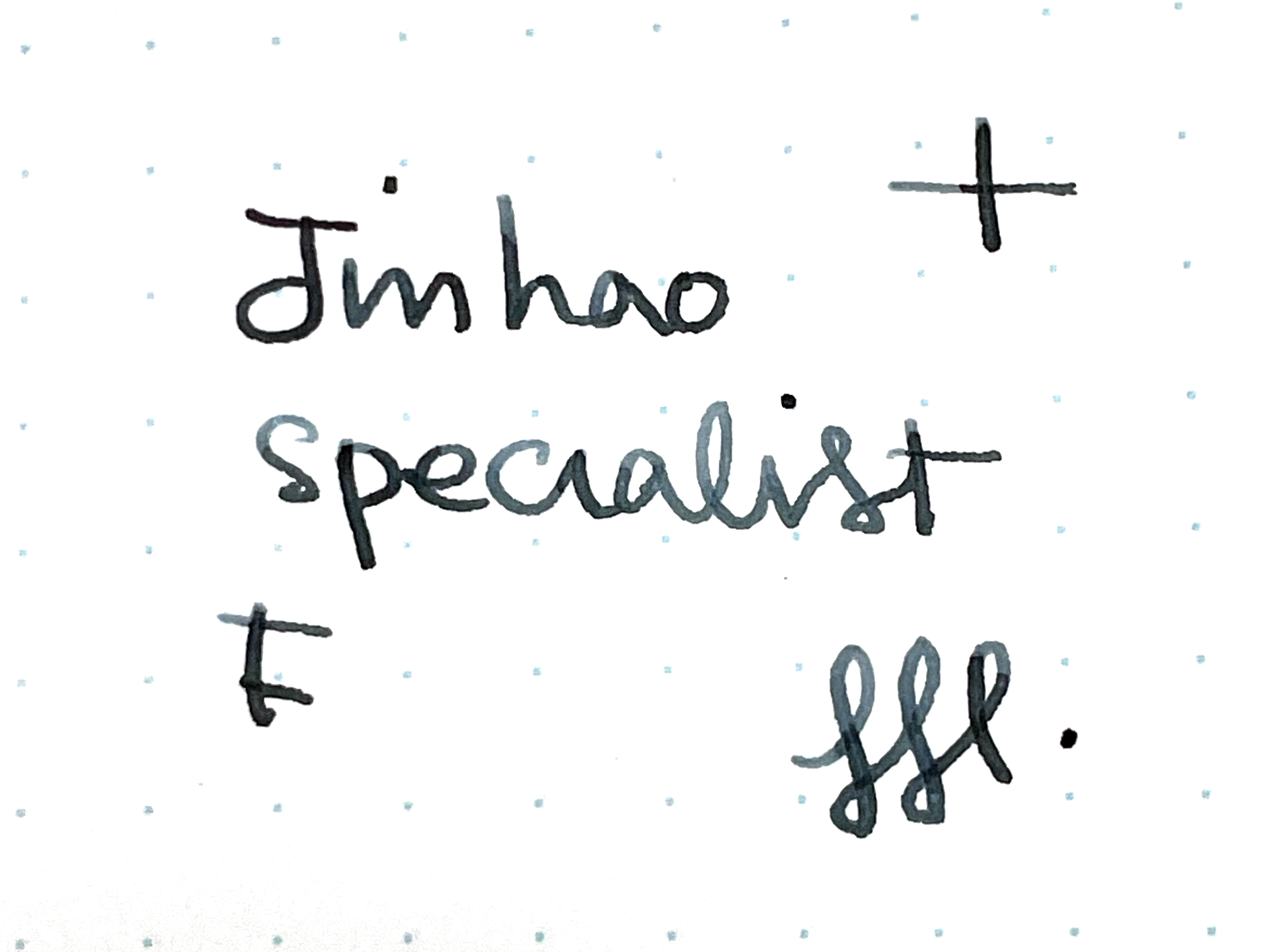 하지만, 필감이란 게 - 여러 개의 요소가 섞이며 종합적으로 느껴지는 거잖아. 그립감, 무게, 밸런스, 닙의 경도, 배럴의 감촉, 바디의 길이, 잉크의 흐름 등을 종합한 게 필감이라고 생각하는데, 이 펜은 필감이란 걸 '종이 위에서 미끄러지는' 느낌 하나로만 정의하고 그 방향으로만 몰두한 것 같아. 게다가 개인적으로는 버터 필감을 좋아하는 편이 아니고, 분명한 데피니션(?)이 있는 펜을 좋아하는데, 이 펜은 약간 수성펜 느낌이야. 제법 낭창해서 OMR 싸인펜 질감같아. 아니, 볼펜이 미끄러지는 느낌 정도로 좀 과하다 싶어. (이 정도면 왜 만년필을 쓰나 싶을 정도)
