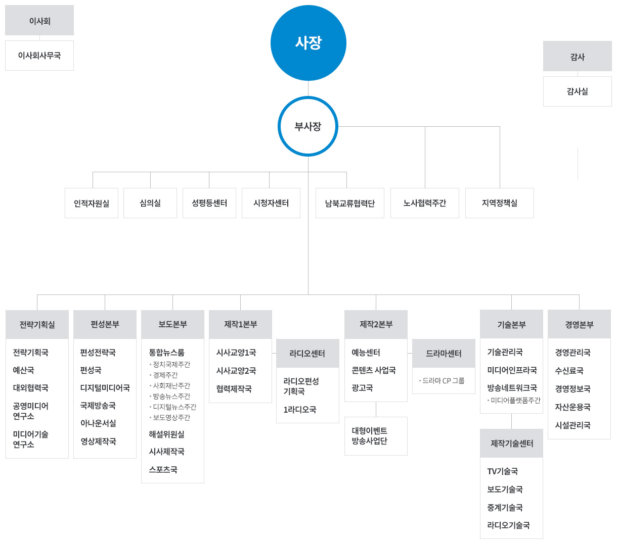 사실 KBS는 여러 본부로 구성된 연합체의 형상에 가까워. (막연히 상상하던) 중앙집권적인 모습이라기보다는, 여러 회사들의 묶음에 가깝더라구. 풀뿌리 민주주의 같은 거지.