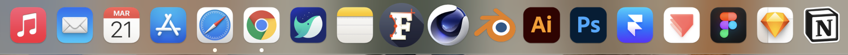 처음엔 새로운 것을 배우겠다고 Cinema 4D, Blender, Framer 등 여러 가지를 설치했지만, 기초적인 내용을 배우고 나니 흥미가 뚝 떨어져서 거의 켜지 않는다. 젊었을 땐 플래시 스크립트를 이틀 만에 파악했었는데, 지금 내게는 그런 열정과 체력이 없다.