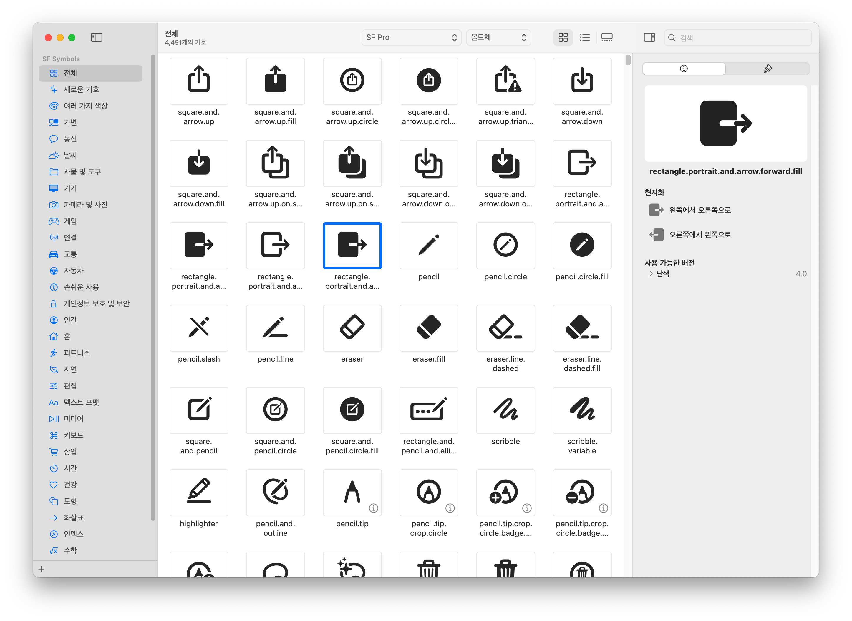지금 대충 4,000여 개의 아이콘이 등록되어 있고, 계속 늘어날 거야. SF Symbol 4라고 부르는 걸 보면 알겠지만, 자기들 나름대로 꽤 열심히 고도화를 했고, 이젠 상용으로 쓸만해진 것 같아. (예전에는. pkg 포맷으로 운영되었음)
