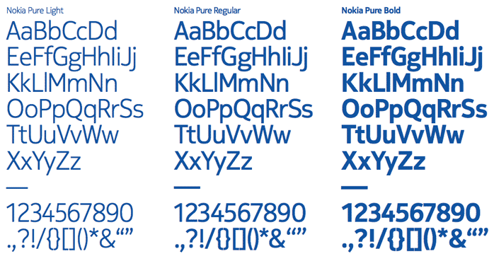 여전히 노키아는 Nokia pure 서체를 사용하고 있고, 새 로고와 어울리는 형태와 규모로 잘 사용하고 있어. 이 부분은 리핀코트의 손이 닿지 않은 것 같고, 그래서 다행인 것 같아. ^^