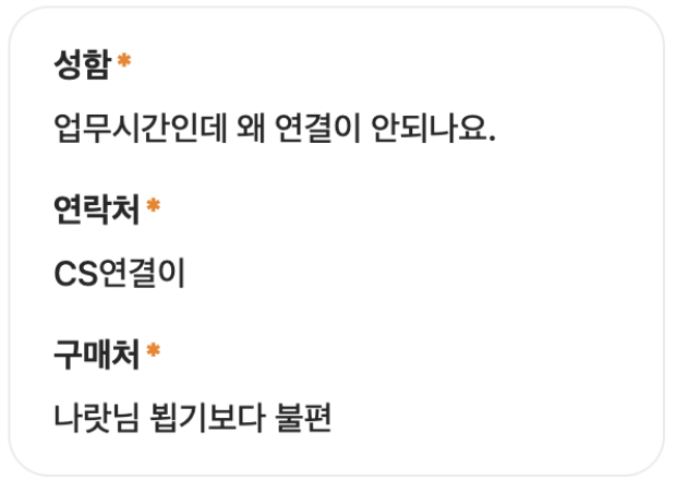 - 웹사이트에 표기된 바로는 점심시간이 11:30에서 12:30이라고 적어 두었는데, 체감하기로는 11시부터 1시 반 까지는 연락이 되지 않았어. AS를 진행한 전체 기간이 약 열흘이었는데, 해당 시간 안에는 한 번도 연락된 적이 없었어. 게다가 카카오톡이나 웹사이트 내 챗봇의 성능도 매우 떨어져서 제대로 된 상담이 되지 않은 데다, 전화 연락은 포기하는 게 정신건강에 유리할 거야. 2~3명 만으로 운영하는 걸까?