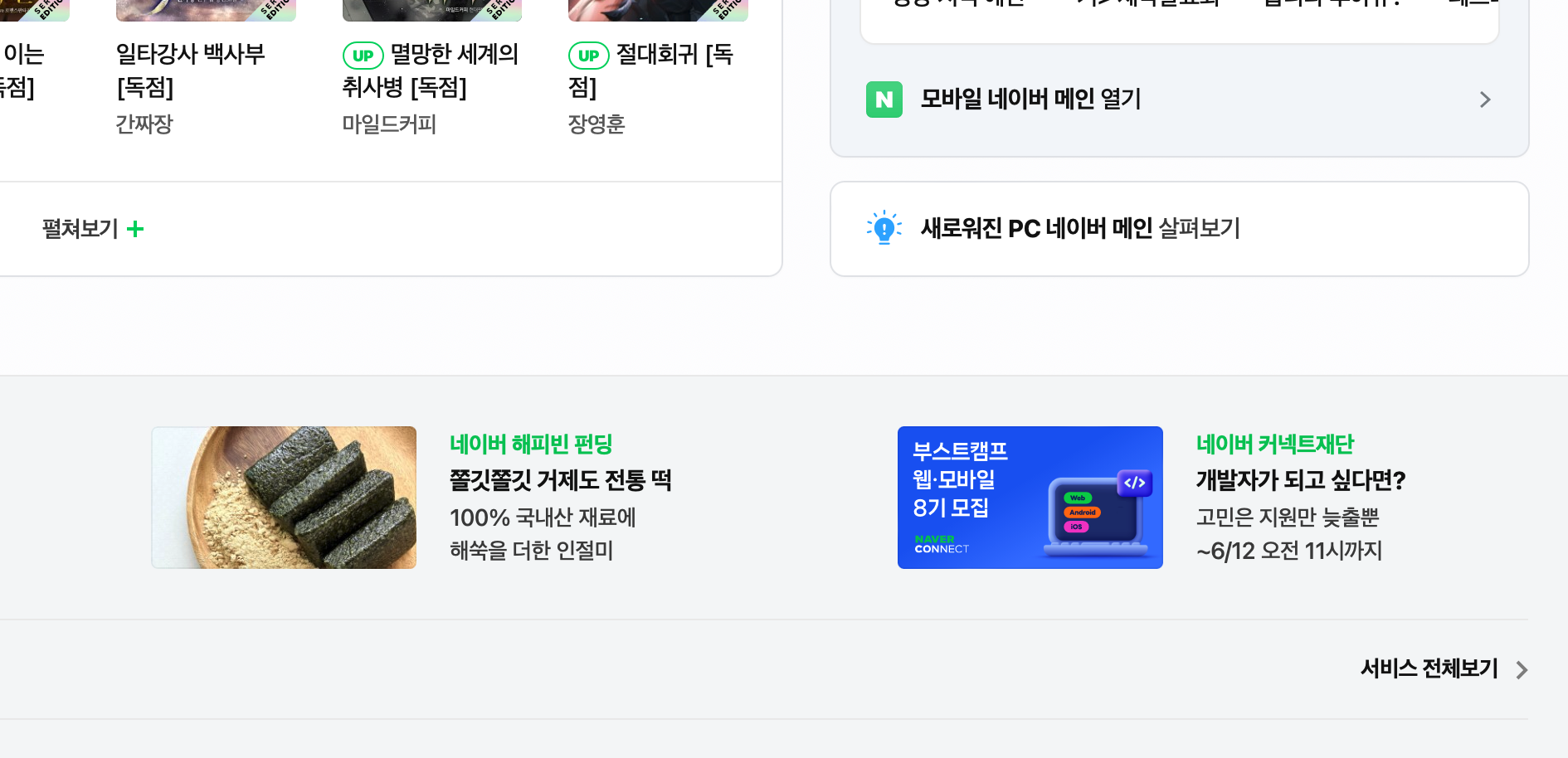네이버 메인화면이 또 개편을 했는데, 이번엔 많이 달라. (링크)