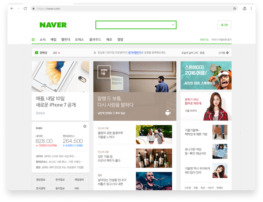 이런 건 좀 안타까워. 네이버의 메인화면 디자이너에게 연민이 생길 정도.