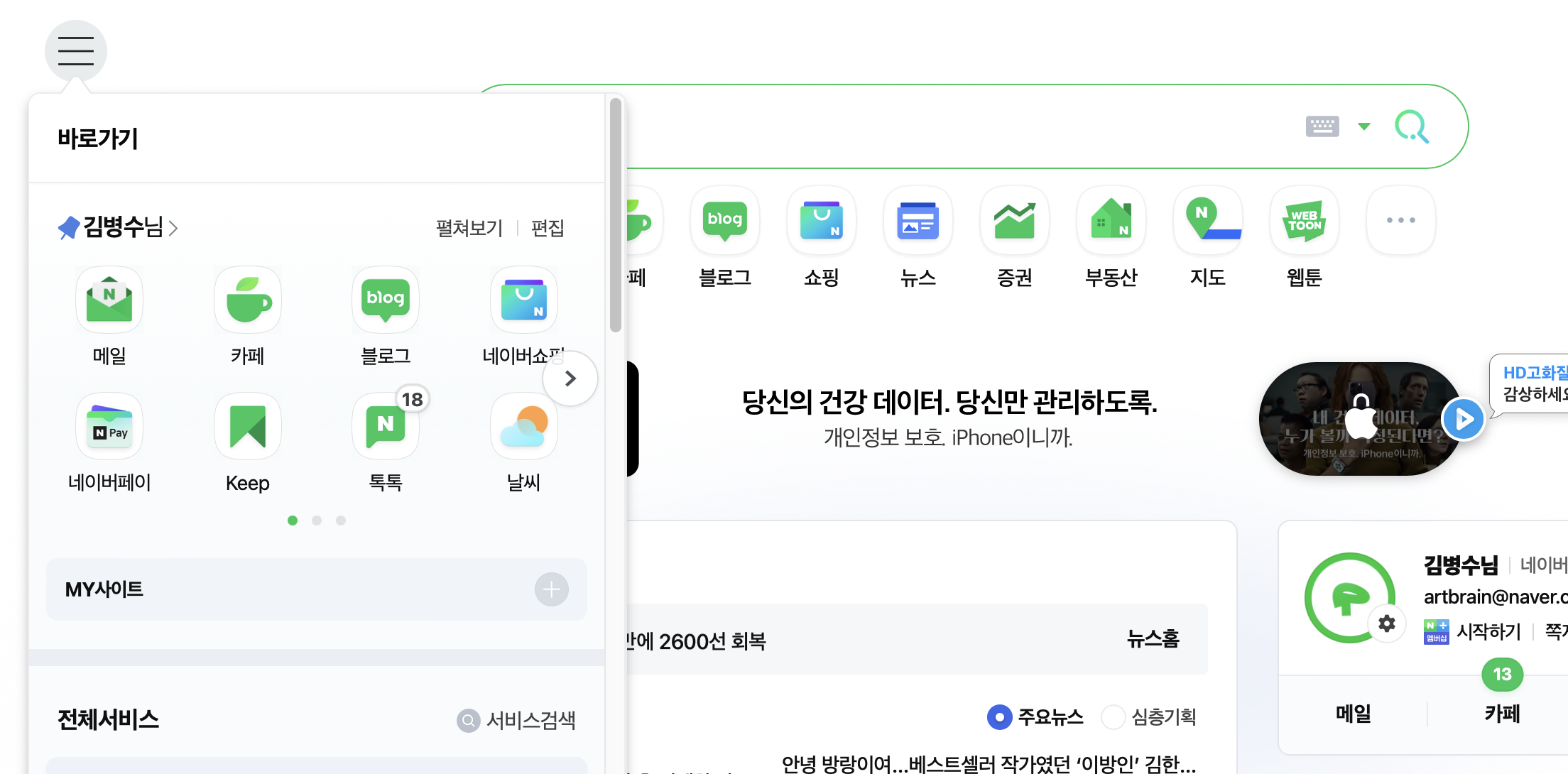 네이버 메인화면이 또 개편을 했는데, 이번엔 많이 달라. (링크)