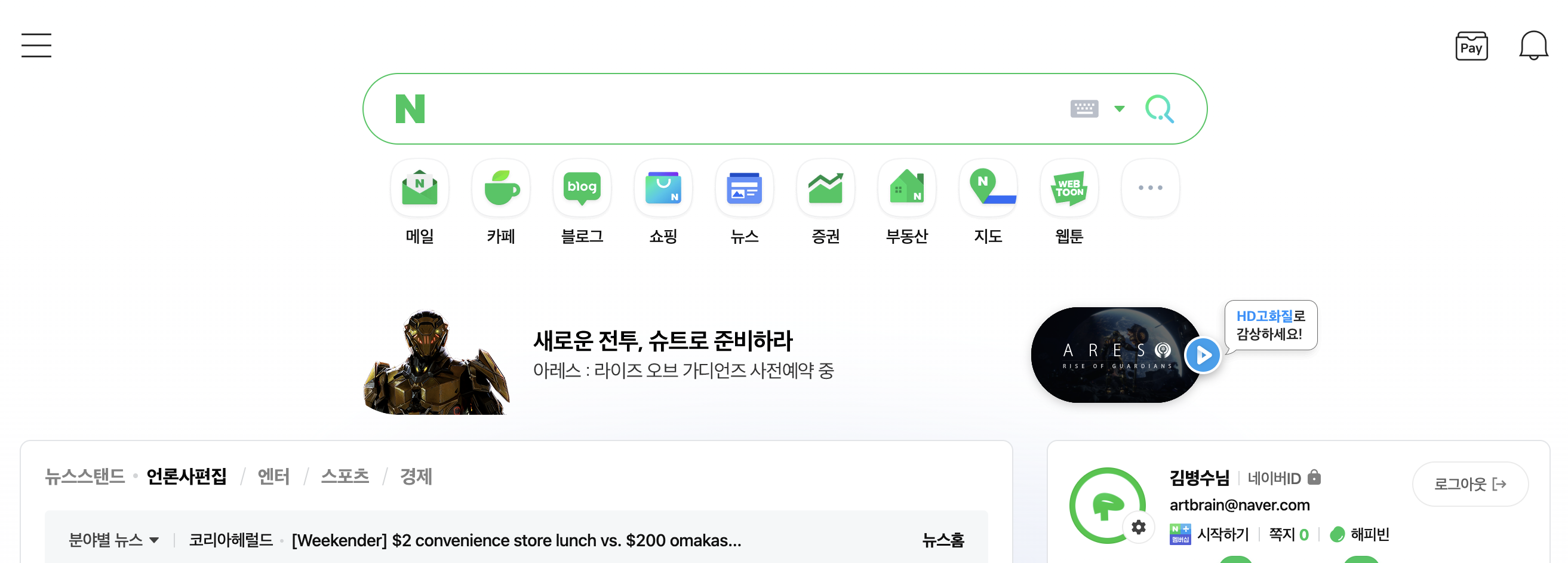 이런 건 좀 안타까워. 네이버의 메인화면 디자이너에게 연민이 생길 정도.
