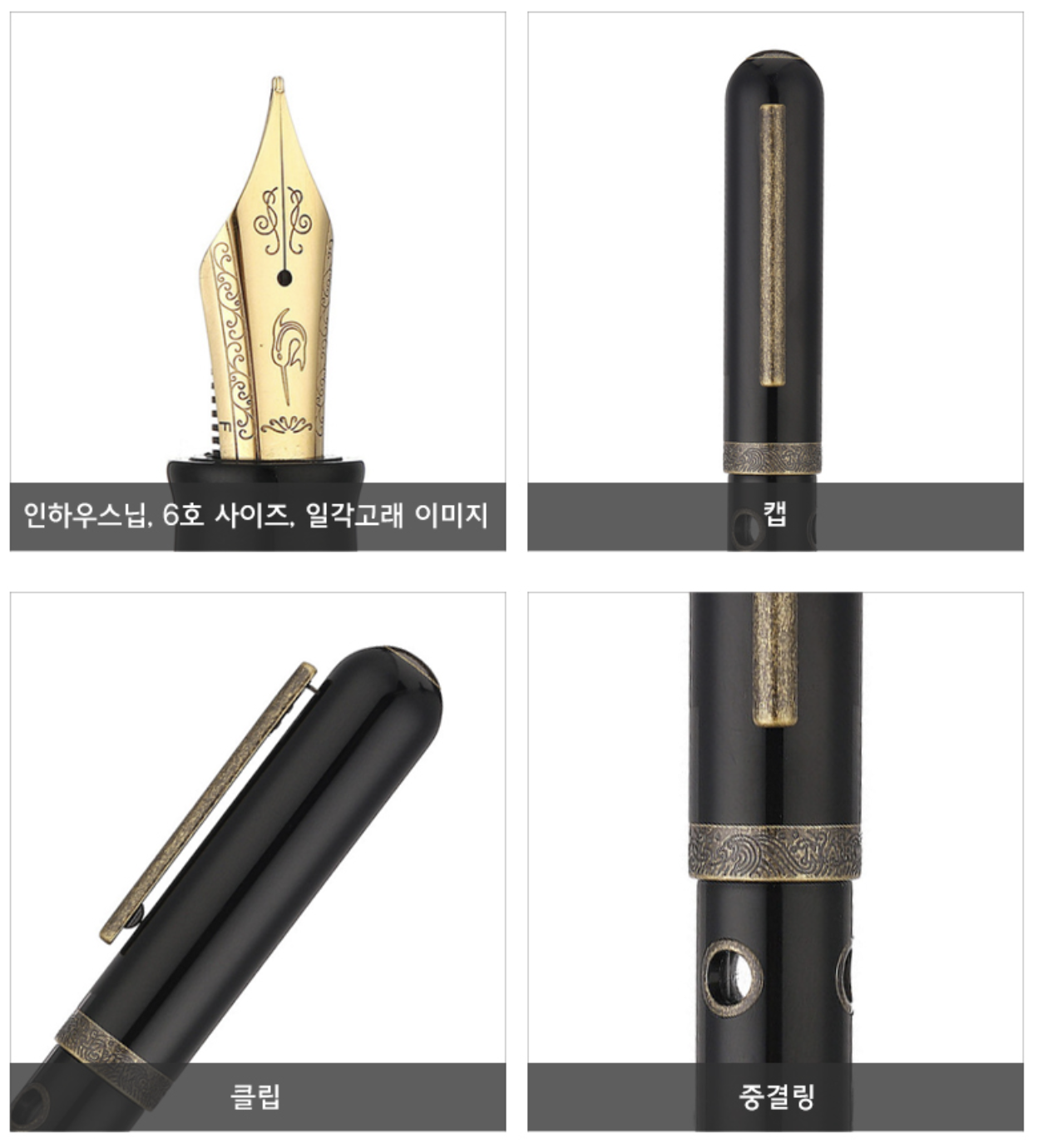 캡꽂할 수 없는 형태고, 피스톤 필러 방식이야. 잉크는 중간에 있는 원형창(그래서 이름이 노틸러스, 잠수함)으로 볼 수 있어. 다들 잉크 잔량을 보여주기 위한 창을 은은하게 만들어 두는데, 이건 대놓고 투명한 창을 뚫어놓았어. 특이하고 장식적이야. 브론즈 부분의 장식도 매우 세밀한데, 막 눈에 띄는 화려함은 없지만, 뭔가 디테일이 좋아 보이는 느낌을 줘. 클립은 단단하게 꽉 물려 있는데, 결합부가 워낙 약해 보여서 웬만하면 클립은 사용 안 할 생각이야.