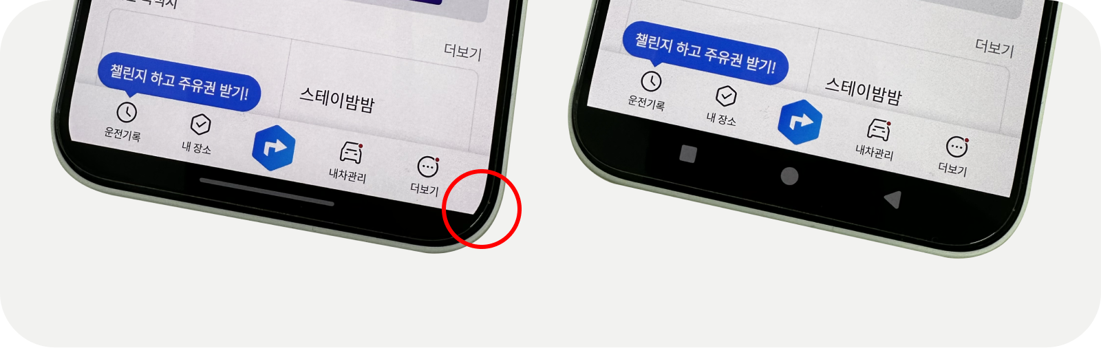 가장 거슬리는 것 중 하나는 상단 status bar나 하단 소프트키 영역. 앱의 바탕색을 이어받지 못하고 항상 검게 나오는 데다, 폰의 라운딩을 고려하지 않아서 bar 형태의 소프트키를 선택하면 아래처럼 라운딩을 잘라먹어. 소프트키 옵션을 사용하면 적어도 라운딩이 잘리지는 않는데... 라운딩 잘리는 것 때문에 올드한 내비게이션을 쓸 수도 없고... ㅠㅠ 물론 이건 앱 개발의 잘못이기도 해. 네이버 웹툰 같은 건 위아래 모두 바탕색을 연결해서 잘 보여주거든. 하지만 대개의 앱에서 이렇게 출력되는 거라면, OS 개발에도 책임이 있다고 생각해.