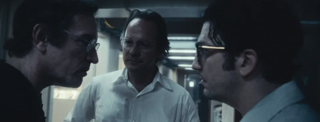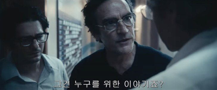 abc 스포츠국은 스튜디오 근처에서 일어난 뮌헨 테러를 확인하고 빠르게 중계권을 장악하려 해. 이건 세 가지 생각이 얽혀 있는 판단인데, 언론인으로서 큰 뉴스를 독점하겠다는 욕심이자, 골든 타임을 놓치지 않겠다는 직업적 집착이고, 미국인으로서 자국의 이익을 생각하는 정치적 선택이기도 했어. 테러라는 갑작스러운 상황 앞에서 이런 여러 욕망과 사명감을 바탕으로 빠른 판단을 내려야 하는 상황 - 초반 30분은 이런 판단의 기로에서 각 인물이 어떻게 행동하는가를 묘사하는 장면으로 이루어지는데, 이 부분이 정말 압권이야. 대사 하나하나를 허투루 쓰지 않아서, 몇 마디 말과 행동만으로 시대적인 배경과 각 캐릭터를 한꺼번에 설명하고 있어. 왜 각본상 후보가 되었는지를 확실히 느낄 수 있겠더라구.