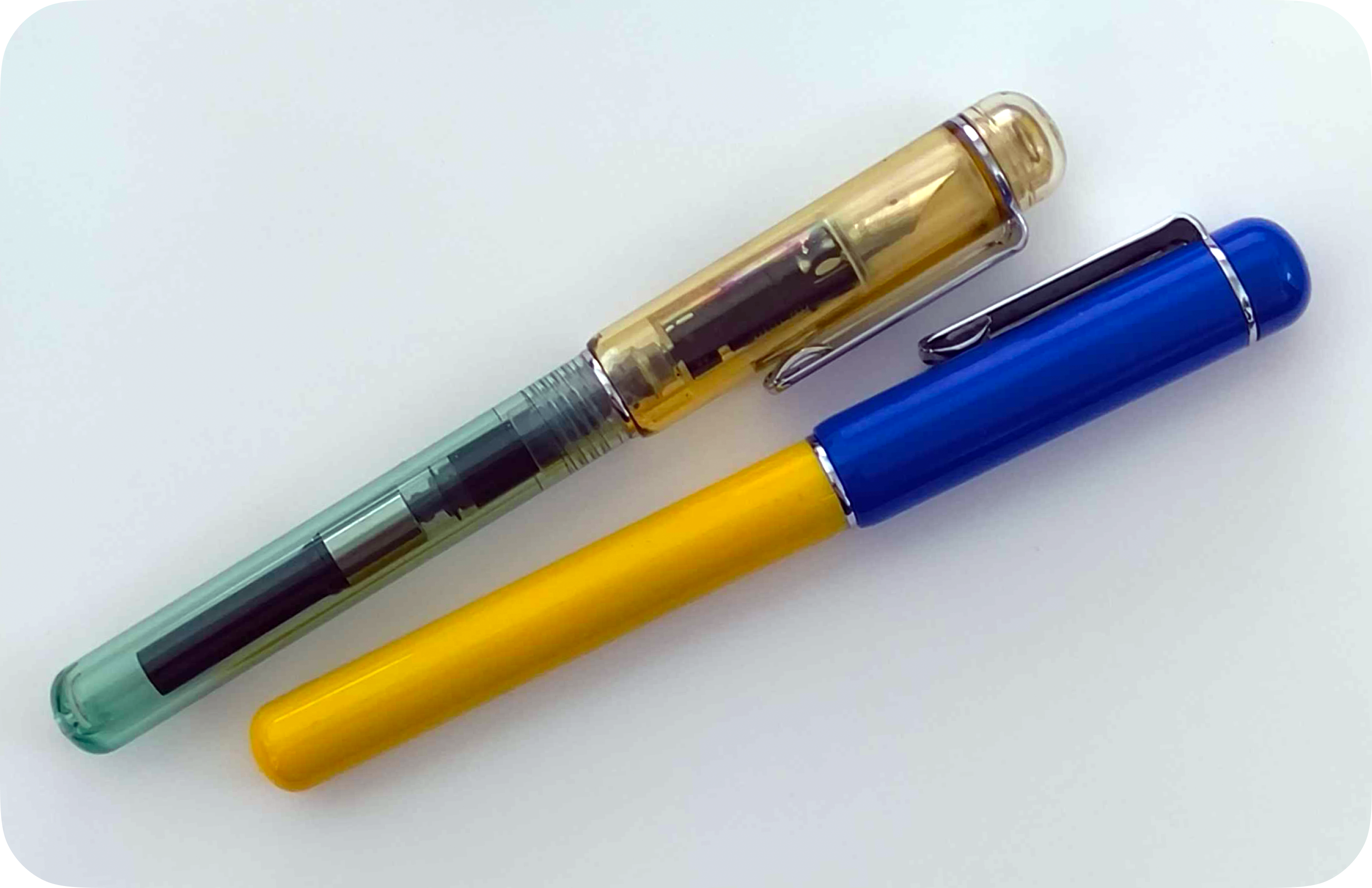 재작년인가 - 성수동에 모나미 매장이 생겼대서, 저 아랫 노란+파란 놈을 2만 원 중반 정도에 사 왔어. 이전에도 모나미의 올리카나 153 NEO를 사 본 적이 있었는데 둘 다 너무 실망했었거든. 올리카는 너무 저퀄이었고, NEO는 '그래도 디자인은 중국에 맡기진 않았나 보네' 싶은 수준 정도. 하지만, 꾸준히 도전하는 국내 기업을 응원하고 싶어서 저 '라인 만년필'을 샀었는데, 앞의 두 제품보다는 훨씬 나아져서 깜짝 놀랐었거든.