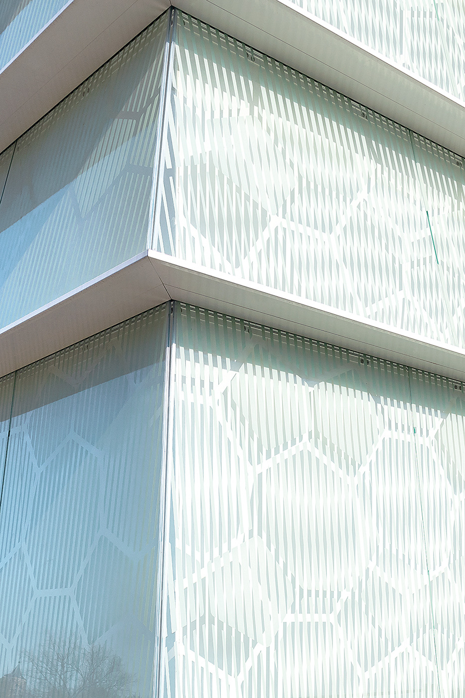 규소가 많이 채취되는 고장이라서 분자구조를 차용해서 그렸대. 그래서 이름이 Mol(ecule)이야. 그런데 누가 보더라도 수영장을 위에서 보는 느낌, 물결의 반짝임이 수영장 바닥에 비추는 느낌이잖아. 각 다각형은 선의 두께로 강약을 다르게 주었고, 유리 벽과 내부 벽 사이의 거리는 태양의 위치에 따라, 보는 각도에 따라 윤슬처럼 착시가 일어날 거야. 사진으로만 봐도 반짝임이 느껴질 정도.