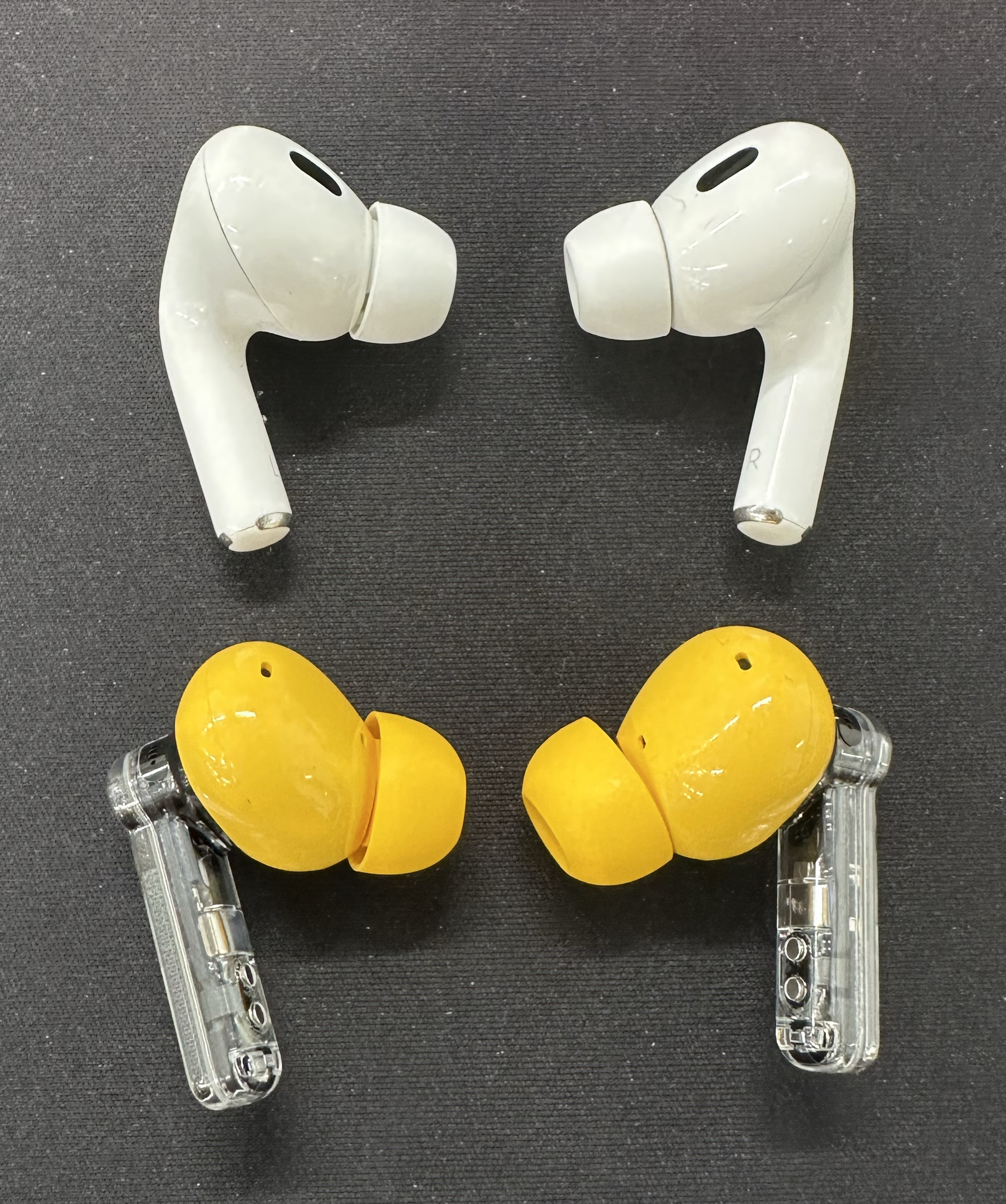 직업이 직업인지라, 폰을 두 개 쓰는데, 이 Nothing 2(a)는 안드로이드앱 테스트용이고 메인 폰은 아이폰이야. 당연히 에어팟도 사용하고 있고. 오늘은 에어팟(pro2)과 ear(a)를 비교하는 방식으로 구매 후기를 써볼까 해. (이하 nothing ear(a)는 '낫싱'으로 표기)