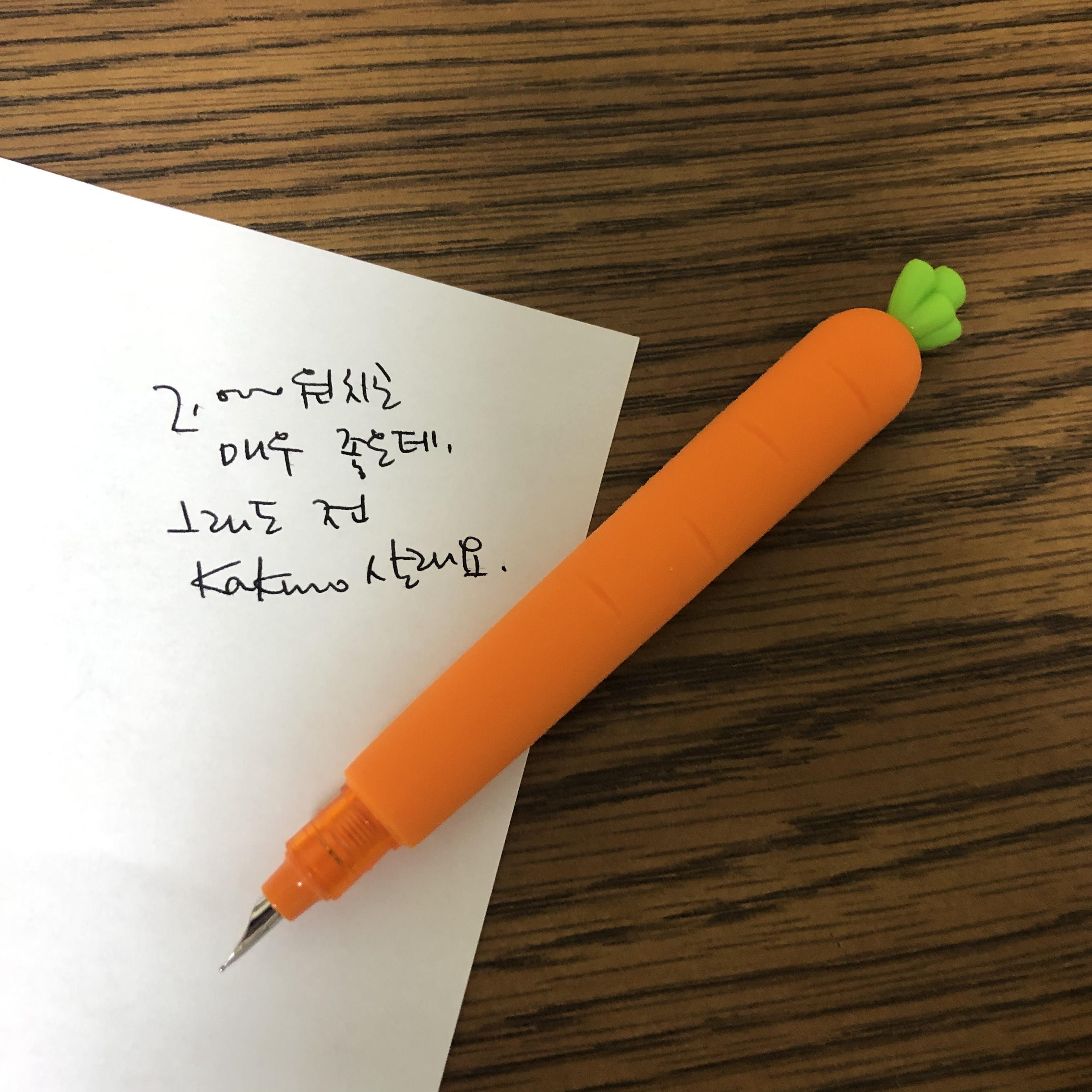 최근에 만년필 동호인 사이에서 선풍적인 인기를 끌고 있는 당근펜을 소개해. 다이소에서 2천원에 살 수 있는 대륙의 실수. ^^