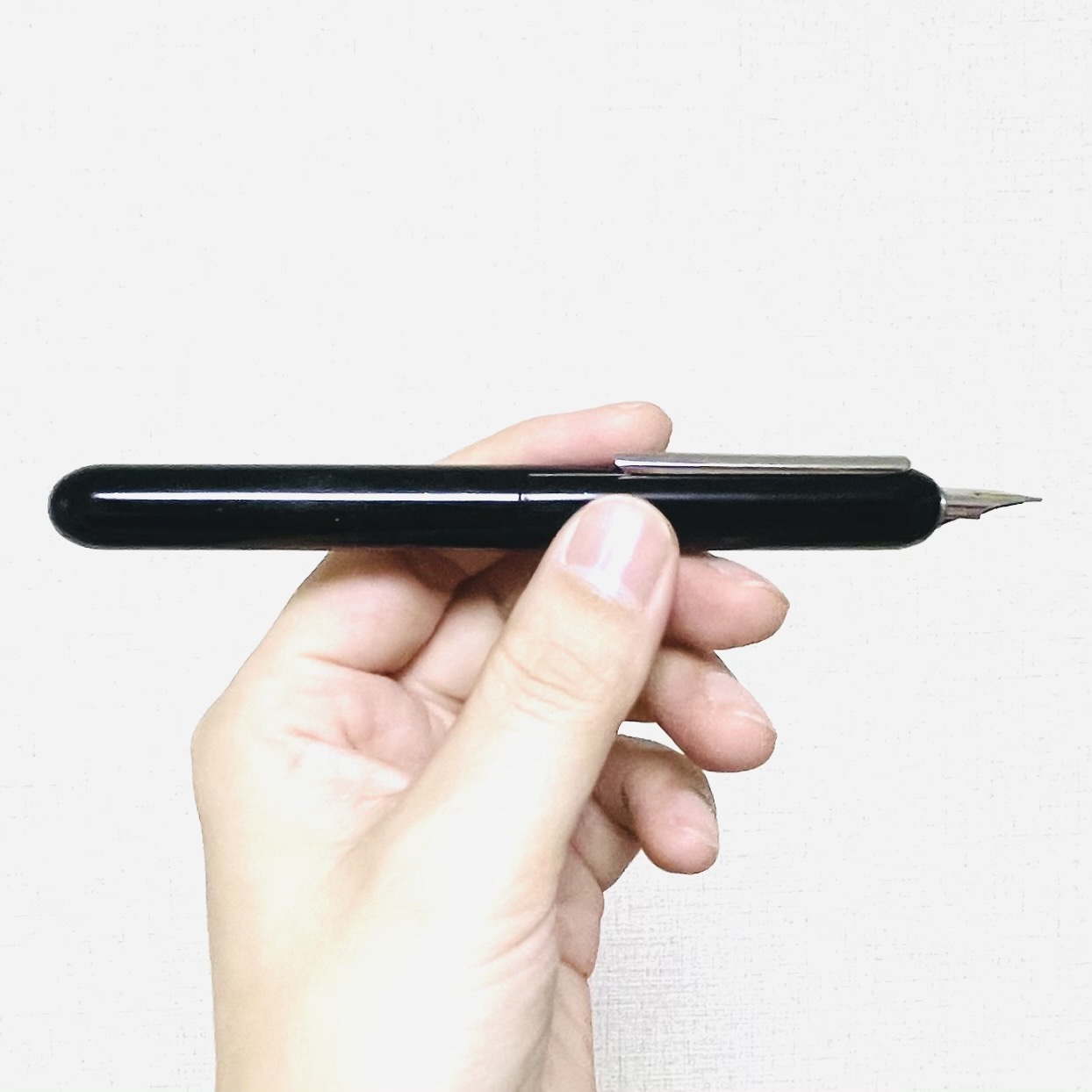대부분의 만년필이 캡을 뒤에 꽂아 쓰거나 캡을 빼고 쓰거나 하잖아. 그런데 이 펜은 캡이란 게 없는 만년필이란 말이지. 그래서 무게 중심이 좀 특이해.