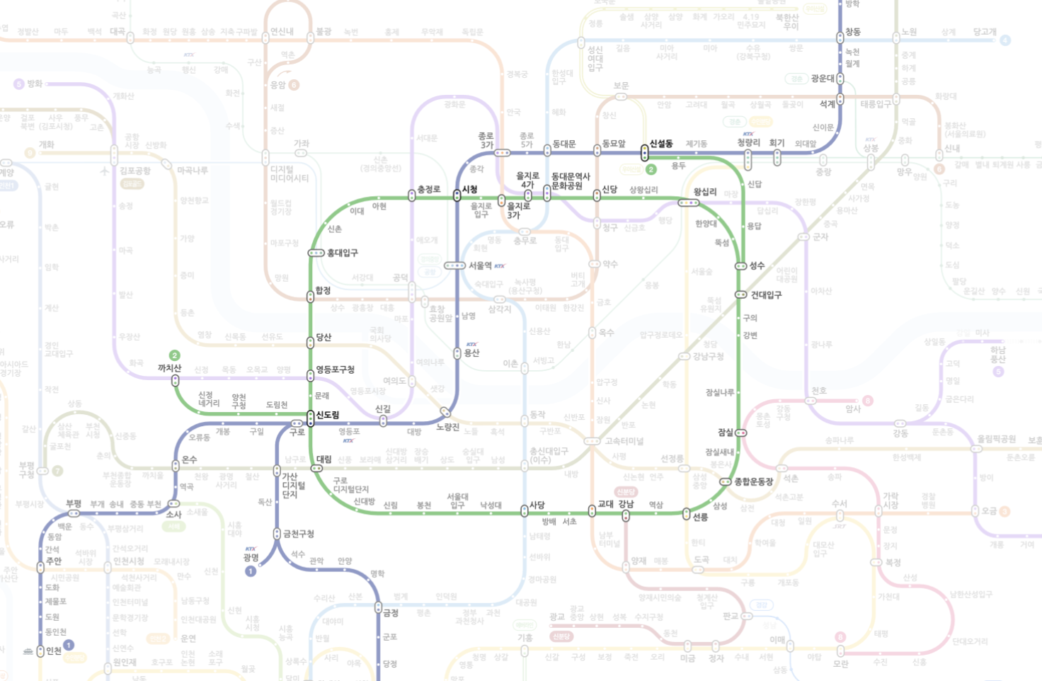 그리고... 근본적인 고민도 있는데, 왜 노선도는 반드시 서울 지하철 전체를 담아야만 하는지에 대한 의문이 있어.