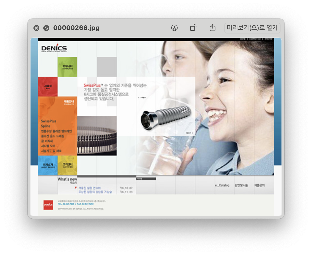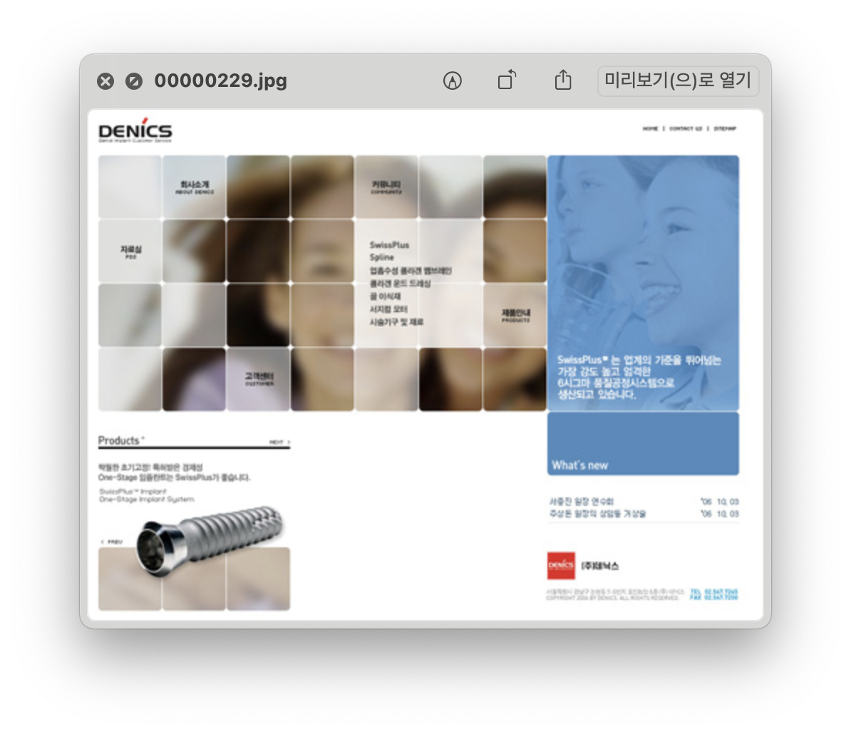 임플란트 나사(?)를 만드는 회사 중 하나인 Denics의 홈페이지 작업. 꽤 나이스한 매너를 가지신 분들로 기억해. 그러고 보면, 애니파인더의 작업들은 다들 진행이 스무스했어. 클라이언트 운이 정말 좋았던 것 같아.