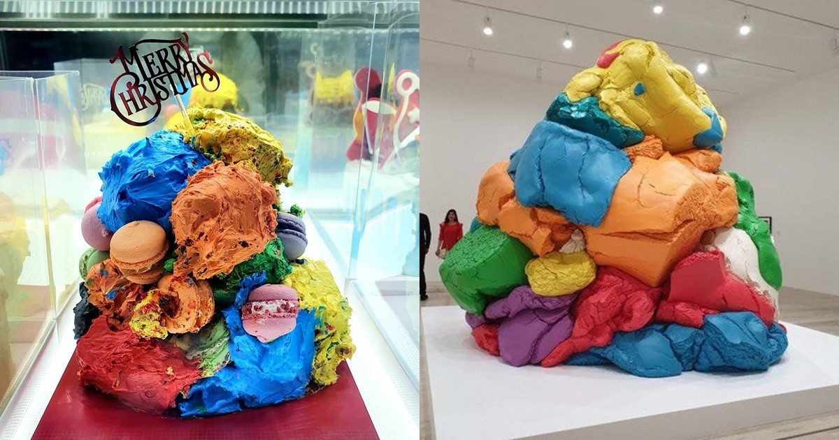 권지안 작가는, 굳이 play doh의 색상을 가져 올 필요가 없었어. play doh를 써 본 사람들은 알겠지만, 되게 유치하고 원초적인 색상 구성으로 이루어져 있거든. 나름 회사의 시그니처 색상이지. 제프 쿤스는 애초에 play doh를 똑같이 베끼고 싶어 했을 테니, 아주 신중하게 (외주를 주어서) 색상을 조율했을 거야. 그런데, 그녀에게는 그런 맥락이 없지. 갑자기 play doh 색상이 케이크에서 불쑥 튀어나올 이유가 없잖아.