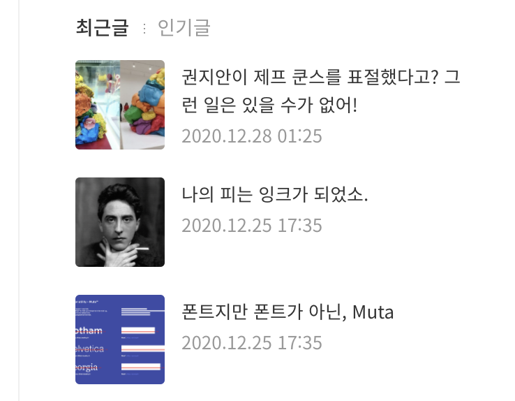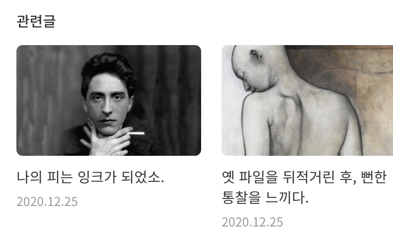 f. 글 하단에 '이전글 - 현재글 - 다음글'이었는데, 현재글이 있는 게 의미도 없고, 왠지 그것만 말줄임이 안되서, 걍 '현재글' 삭제 (html에서 div class="article-page" 부분을 찾아서 주석화 해놓음)