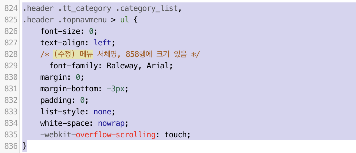 e. 몇몇 행간 수정 (line-height), 서체 색상은 필요에 따라 opacity로, 혹은 color로 수정함.