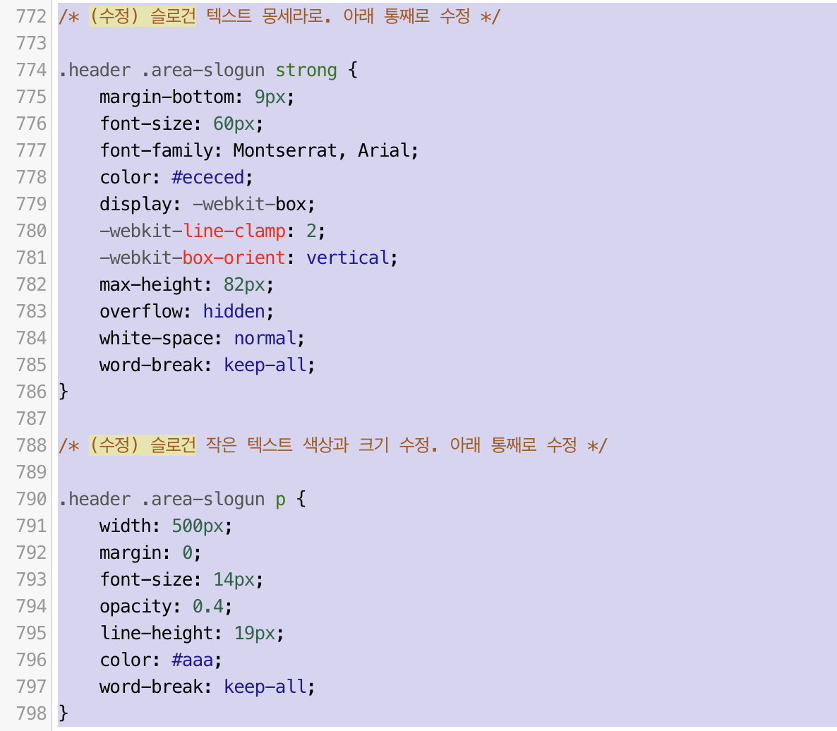 e. 몇몇 행간 수정 (line-height), 서체 색상은 필요에 따라 opacity로, 혹은 color로 수정함.