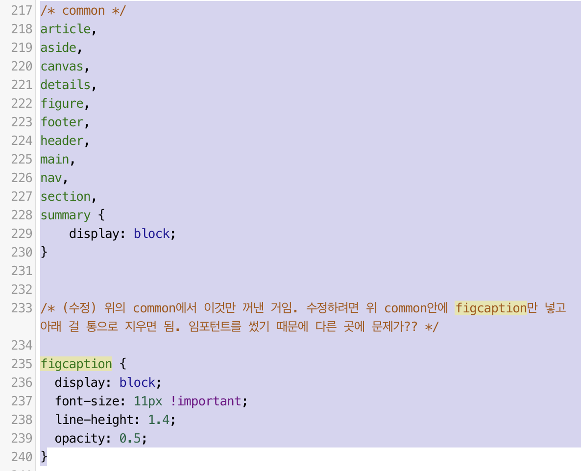 c. 오디세이 스킨이 common 부분을 묶어놔서, 글씨 크기가 지나치게 통일되었는데, 이미지 아래 붙는 캡션(주석?)이 눈에 거슬리더라구. 그래서, 위에 common에서 figcaption을 뗀 후 아래에 따로 적었어.