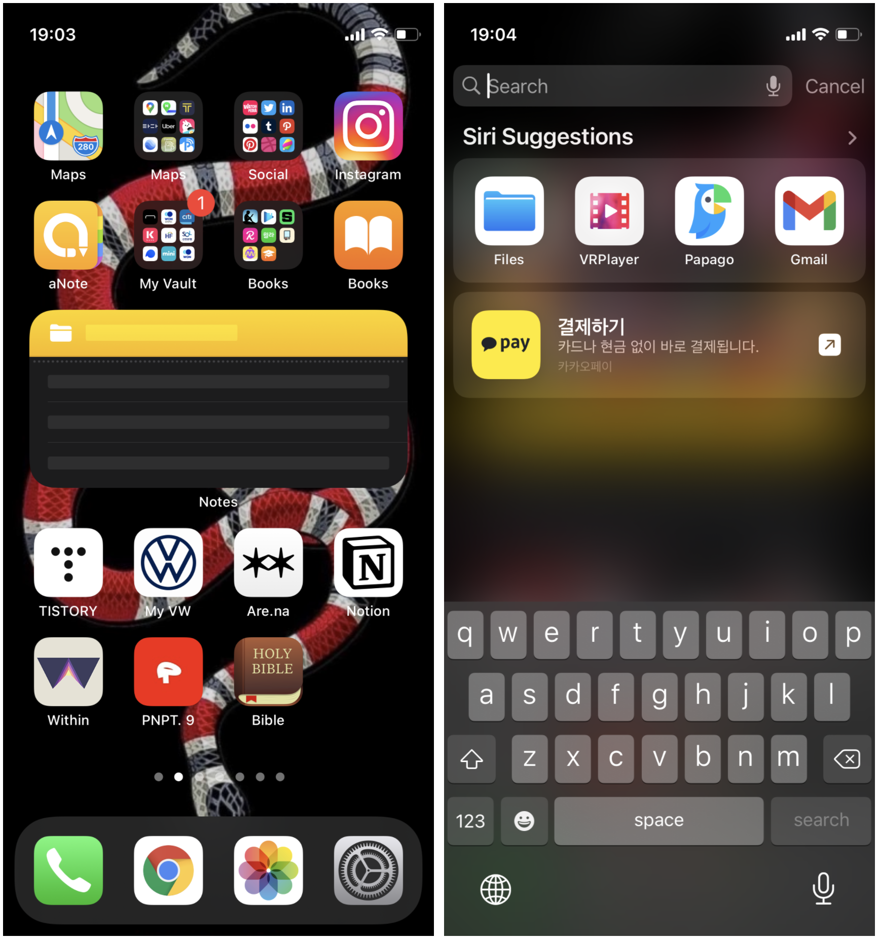 블러 위에 블러를 두는 것이 뎁스 개념이라면 나름 이해하려 노력해 보겠는데^^, 한 화면에 여러 개의 블러를 중복해서 쓰는 건 좀 아니다 싶어. 서치 인풋에도 블러가 있고, 그 아래에 네비바 만큼의 작은 블러가 있고, 그 아래로 스크롤되는 모듈에도 블러가 있고, 마지막으로 최하단 영역도 블러가 있고 - 무려 4겹의 블러로 떡칠을 했는데, 이건 아니지 싶어. 아마 다음 개선 때 이 부분 디자인이 바뀌지 않을까? Force Touch도 비슷한 이유로 퇴화하고 있는 걸 보면, 이 화면들도 조만간 개선될 것 같아.